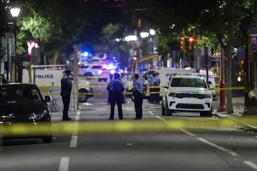 Police officers were patrolling the area on South Street in central Philadelphia at about 11:30 p.m. Saturday when they heard multiple shots. Racing to the scene, they found several people with gunshot wounds lying on the sidewalk and in the street and began to render aid, Police Commissioner Danielle Outlaw said.