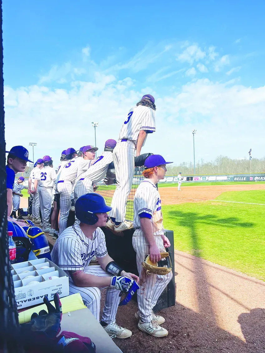 FHS players watch anxiously from the dugout during the tight Franklinton-Shaw game. PHOTO BY TONI TAGEANT