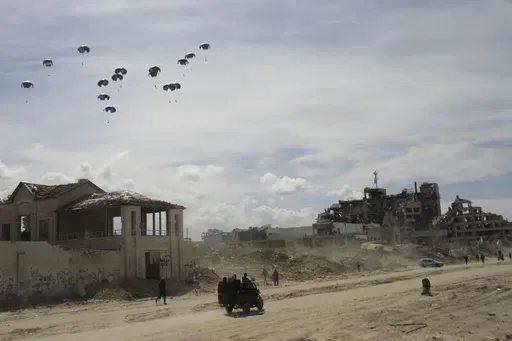 On the eve of Ramadan, hungry Gaza residents scrambled for packages of food supplies dropped by U.S. and Jordanian military planes — a method of delivery that humanitarian groups call deeply inadequate compared to ground deliveries. But the daily number of aid trucks entering Gaza since the war has been far below the 500 that entered before Oct. 7 because of Israeli restrictions and security issues.