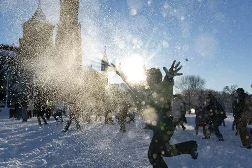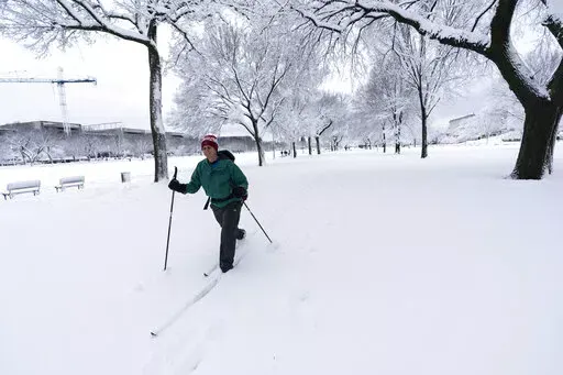 Photos of the wintry landscape showed kids being pulled on sleds around the Capitol, a snow-covered Korean War Veterans Memorial and a reveler out for a run.