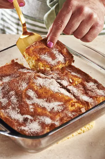 6. Bake until golden brown and until a toothpick or wooden skewer inserted in the middle comes out clean, about 30 minutes. Cool in the pan on a wire rack. Serve warm or at room temperature, in squares (or wedges).