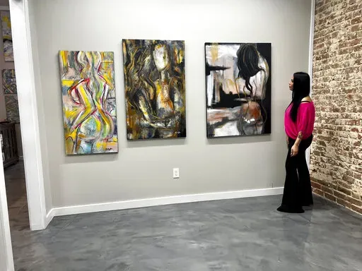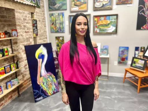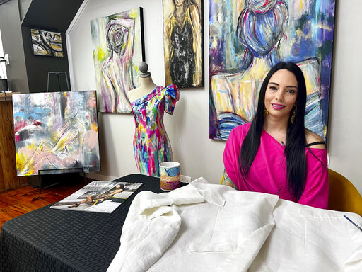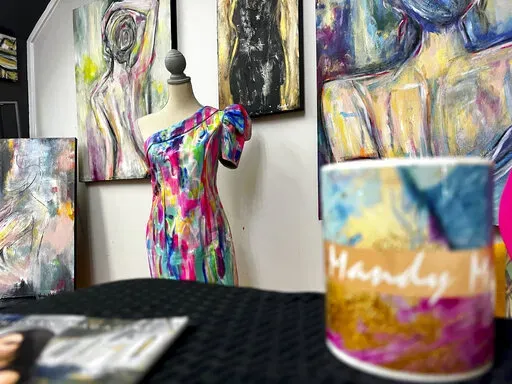 PONCHATOULA, La. (AP) — Louisiana artist Mandy Poche needed something to wear to her exhibit opening the next day. Instead of making a last-minute dash to the store, she turned to her creative skills and painted a white off-the-shoulder cocktail dress to match one of her artworks. The result has been an internet smash sensation.