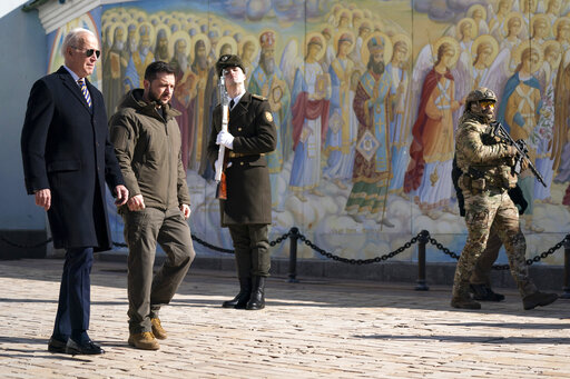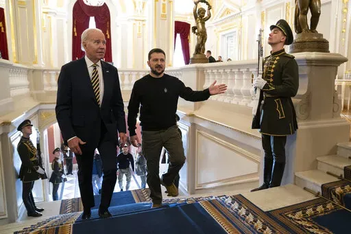 In Kyiv, Biden announced an additional half-billion dollars in U.S. assistance — on top of the more than $50 billion already provided — for shells for howitzers, anti-tank missiles, air surveillance radars and other aid but no new advanced weaponry.