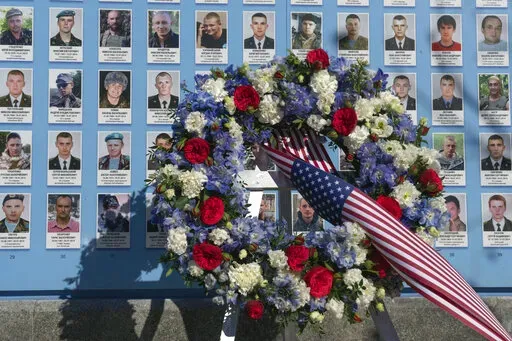 Looking solemn, they continued unperturbed as they laid two wreaths and held a moment of silence at the Wall of Remembrance honoring Ukrainian soldiers killed since 2014, the year Russia annexed Ukraine’s Crimean peninsula and Russian-backed fighting erupted in eastern Ukraine.