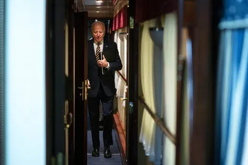 Biden quietly departed from Joint Base Andrews near Washington at 4:15 a.m. on Sunday, stopping at Ramstein Air Base in Germany before making his way into Ukraine on an overnight train from Poland. He arrived in Kyiv at 8 a.m. on Monday. He departed after 1 p.m. by train back to Poland.