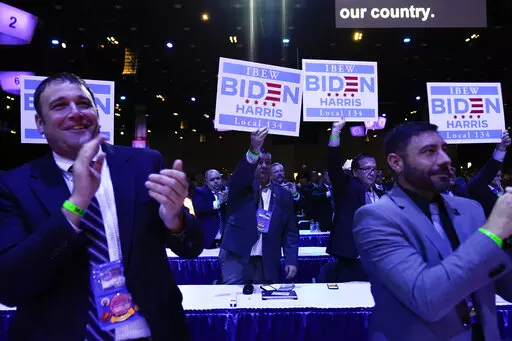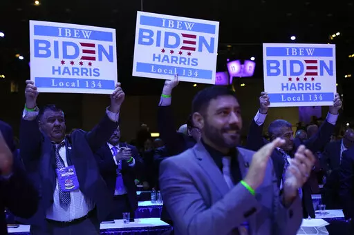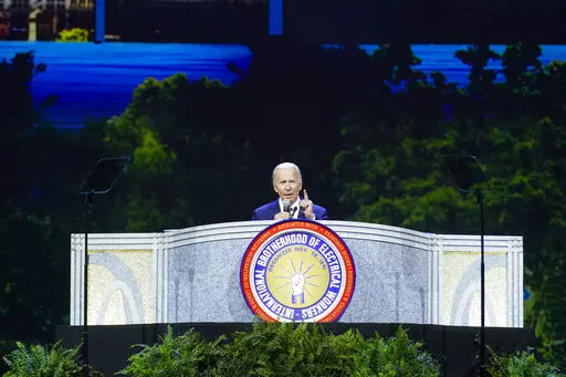 Biden later went to Chicago to address a supportive crowd at the convention for the International Brotherhood of Electrical Workers, a group that was an early and pivotal backer when his 2020 presidential bid was struggling.