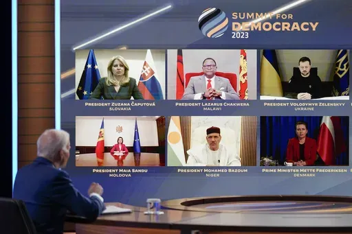 Opening his second democracy summit, Biden looked to spotlight hopeful advancements over the past year despite Russia's war in neighboring Ukraine and U.S. tensions with China over its military and economic influence in the Indo-Pacific and beyond.