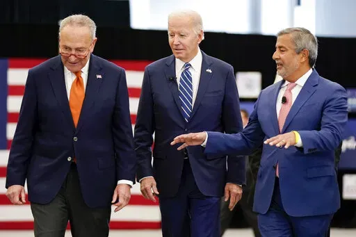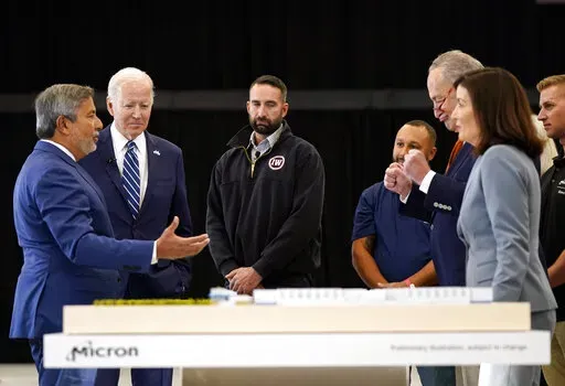 In Syracuse, Biden showcased a significant investment by the U.S.-based company Micron, one of the largest microchip manufacturers in the world. The company has credited a new law boosting domestic production of semiconductors for its new facility that will create 50,000 jobs, which will pay an average of $100,000 a year.