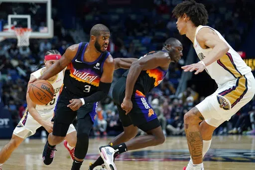 Mikal Bridges added 23 points for Phoenix, which picked up its seventh win over the Pelicans in the last nine games. He and Cameron Johnson (18 points) both made five 3-pointers, while veteran center Bismack Biyombo shot 6 for 6 and scored 16.