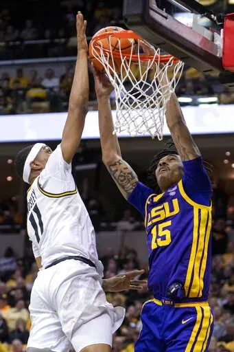 COLUMBIA, Mo. (AP) — Kobe Brown scored 26 points on 10-for-11 shooting and Noah Carter scored 14 points and Missouri won its third straight, beating LSU 87-77 on Wednesday night.