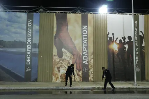 Attendees of this year's U.N. climate conference in Egypt found themselves stepping over streams of foul-smelling fluid Wednesday after a pipe or tank holding liquid waste appeared to have burst near one of the venue's main thoroughfares.