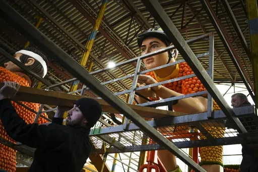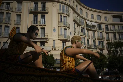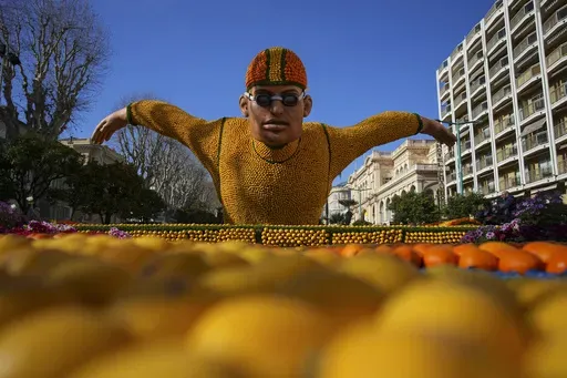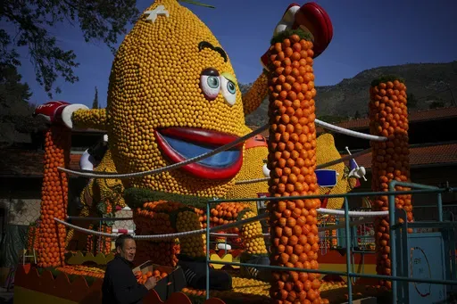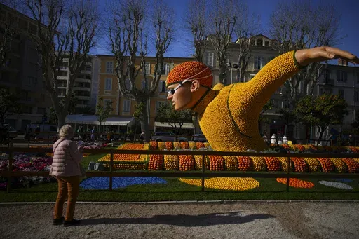 The Mediterranean town of Menton showcased its lush citrus and celebrated the upcoming Olympics in Paris during its Carnival parade on Sunday. Sculptures of athletes assembled from lemons and oranges decorated the streets and rode on giant floats.