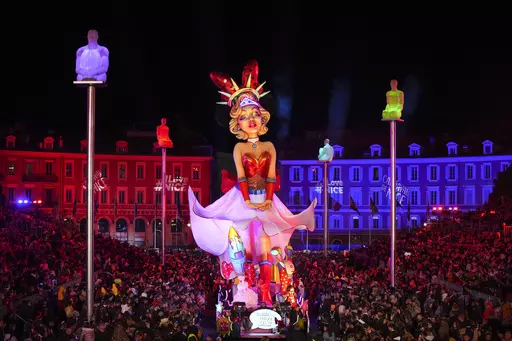 Nice, the Rivera’s capital, kicked off its annual Carnival season on Saturday night with a pop culture-themed parade of lights and extravagant floats that featured “Star Wars” character Luke Skywalker as king and Marilyn Monroe, clad in a Superwoman costume, as his queen.