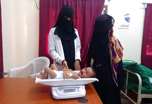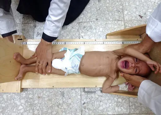 HAYS, Yemen (AP) — An emaciated little girl lies motionless on a hospital bed and struggles to breathe. Her body is covered with sores. She can barely open her eyes.