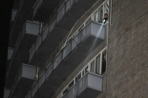 The 14-story commercial building was evacuated, with 75 people led to safety, according to the official news agency Xinhua. The building houses a department store, offices, restaurants and a movie theater. Social media video posts showed clouds of thick black smoke coming out of windows on the building’s lower levels.