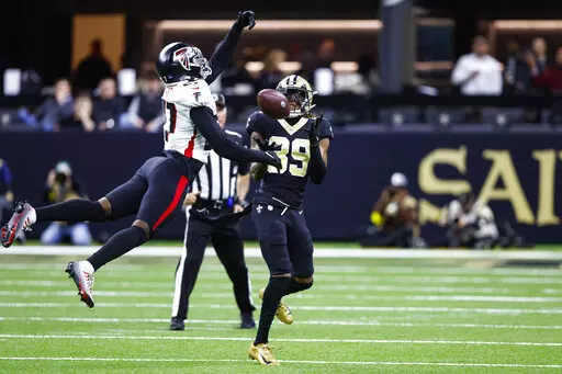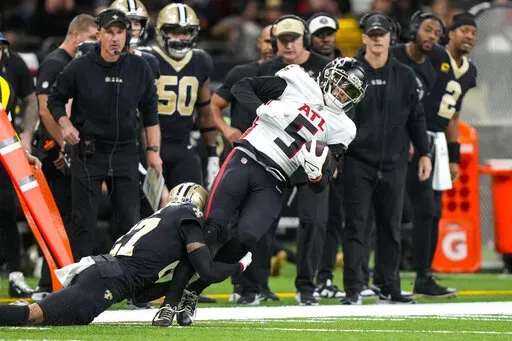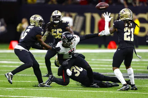 Atlanta was down by a field goal and threatening to score with less than three minutes remaining when Ridder hit Drake London over the middle for first-down yardage on fourth-and-5. But safety Justin Evans punched the ball from London's grasp, and cornerback Bradley Robey snagged it out of the air to give New Orleans the ball on its own 39.