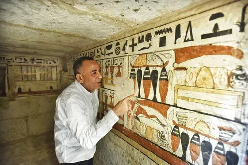 CAIRO (AP) — Egypt on Saturday displayed recently discovered, well-decorated ancient tombs at a Pharaonic necropolis just outside the capital Cairo.