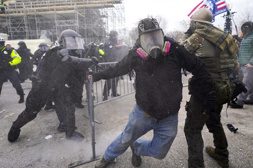 THE FACTS: Echoing Trump’s false claims of a stolen election, rioters at the Capitol engaged in hand-to-hand combat with police and a slew of rioters were carrying weapons, including firearms, knives, brass knuckle gloves, a pitchfork, a hatchet, a sledgehammer and a bow. They also used makeshift weapons, including flagpoles, a table leg, hockey stick and crutch, to attack officers. Police officers were bruised and bloodied, some dragged into the crowd and beaten. One officer was crushed in a doorframe and another suffered a heart attack after a rioter pressed a stun gun against his neck and repeatedly shocked him. One rioter has been charged with climbing scaffolding and firing a gun in the air during the melee.