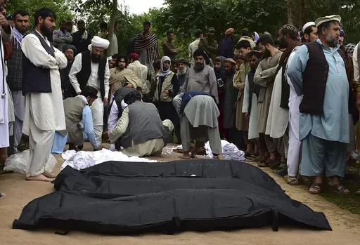 Videos posted on social media showed dozens of people gathered Saturday behind the hospital in Baghlan looking for their loved ones. An official tells them that they should start digging graves while their staff are busy preparing bodies for burial.