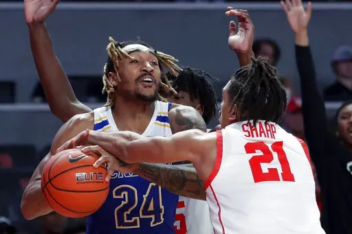 Houston used a 20-2 run over an 8 1/2-minute span of the first half to open a 27-9 lead on a 3-pointer by Tramon Mark with 4:40 remaining. Sharp had nine points in the run.