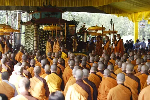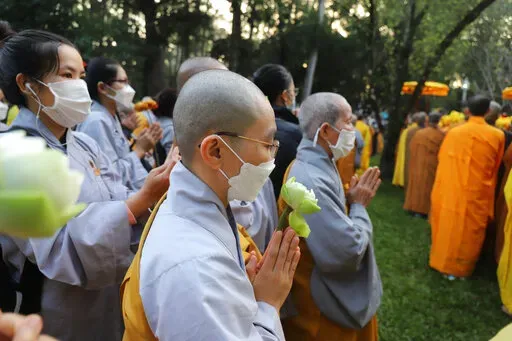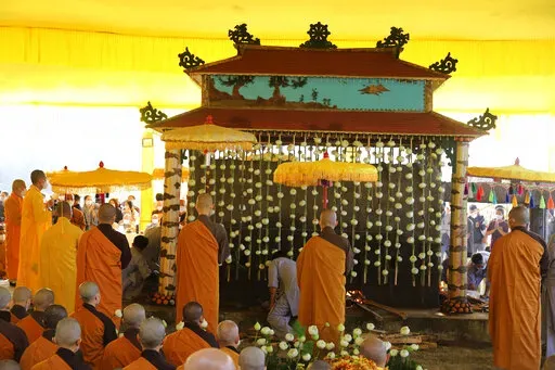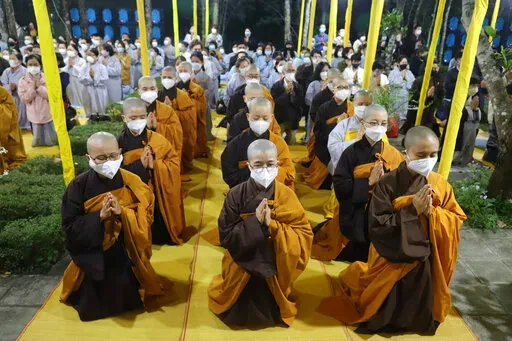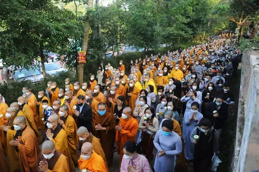 Thousands of monks and disciples trailed a procession of pallbearers carrying Nhat Hanh's coffin from Tu Hieu Pagoda, where he spent his last days, to the cremation site. Others kneeled and clasped their hands in prayer on the roadside and bowed to the ground as the casket went past.