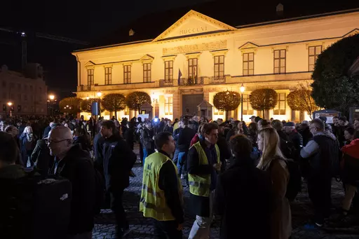At the presidential headquarters in Budapest on Saturday evening, around 200 people gathered in what was originally planned as a protest to call on Novák to resign.