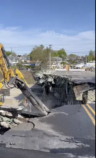 A live camera operated by the Connecticut Department of Transportation on Saturday showed excavators and bucket loaders scooping up rubble from the destroyed Fairfield Avenue overpass above I-95 in Norwalk and dumping it into large containers and dump trucks to be hauled away.