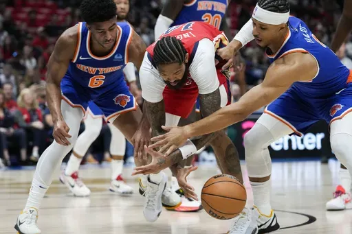 New Orleans-area native Mitchell Robinson grabbed 15 rebounds for New York. Julius Randle grabbed 12 rebounds and scored 10 points, but missed 11 of his 15 shots, including all five he put up from 3-point range. Hart grabbed 10 rebounds.