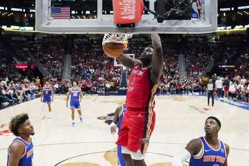 Williamson, who missed most of last season because of a hamstring injury last Jan. 2, has now scored at least 23 points in each of New Orleans' first two games. Against New York, he hit difficult leaners or one-handed floaters through crowds of defenders, sometimes while being fouled. Several of his baskets brought the crowd to its feet in full voice as he celebrated by flexing his biceps on each side of his head.