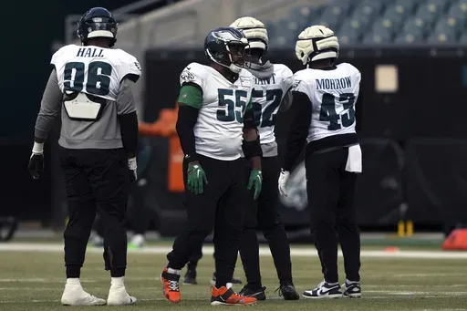 The key injured starters the Eagles held out of practice on Thursday included guard Landon Dickerson (knee), center Cam Jurgens (back) and wide receiver DeVonta Smith (hamstring). None of the injured Eagles was expected to miss the Super Bowl.