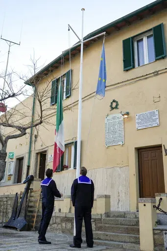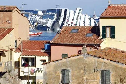 GIGLIO, Italy (AP) — Fog horns wailed and church bells tolled Thursday as Italy honored the 32 victims of the Costa Concordia shipwreck on the 10th anniversary of the disaster, with a commemoration that recalled the moment the cruise ship struck a reef and capsized off the Tuscan island of Giglio.
