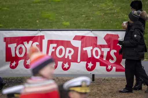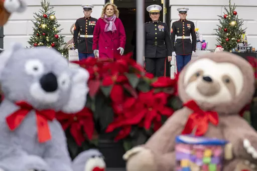WASHINGTON (AP) — Jill Biden and children from military families on Wednesday helped sort toys donated by the White House to the U.S. Marine Corps Reserve Toys for Tots program, which gives playthings to needy children.