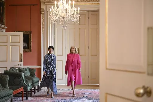Jill Biden will also mingle at a luncheon Sunday hosted by Sunak and Murty at their Downing Street residence before her flight back to Washington.