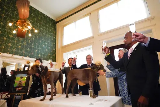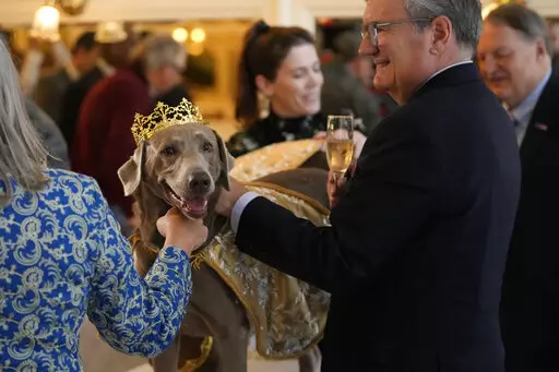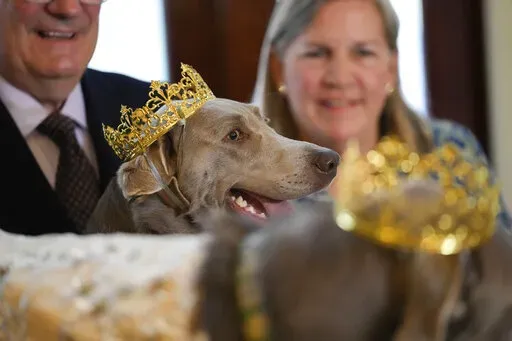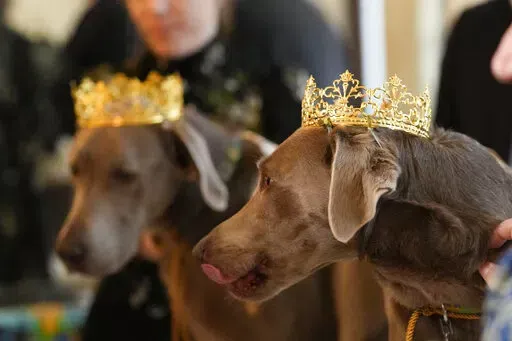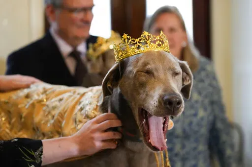 NEW ORLEANS (AP) — A venerable fine-dining fixture on Bourbon Street helped kick off the final frantic days of New Orleans Mardi Gras season Friday — relaxing its jackets-required dress code and briefly ditching its no-pets policy for a pair of crown- and cape-wearing rescue dogs.