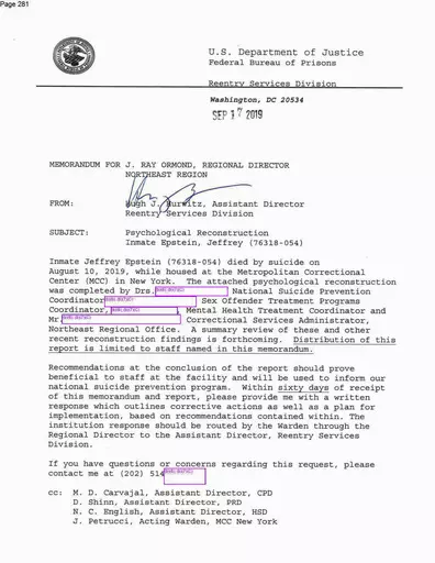 Epstein’s death touched off a wave of anger toward the Bureau of Prisons and questions about the operation of the Metropolitan Correctional Center. In an internal memo, officials blamed “seriously reduced staffing levels, improper or lack of training, and follow up and oversight” for the death.