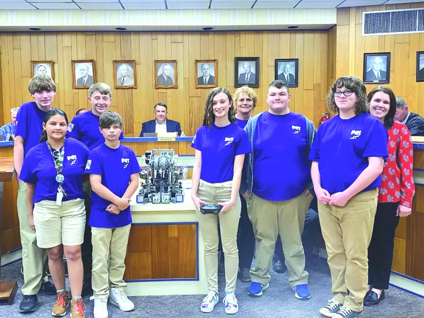 Pine Robotics - Heath Breland, Carmen Cobon, Taylor Logsdon, Evan Fornea, Cameron Magee, Rhonda Crawford(sponsor), Donald Page, David Haga, Principal Ramona Thomas