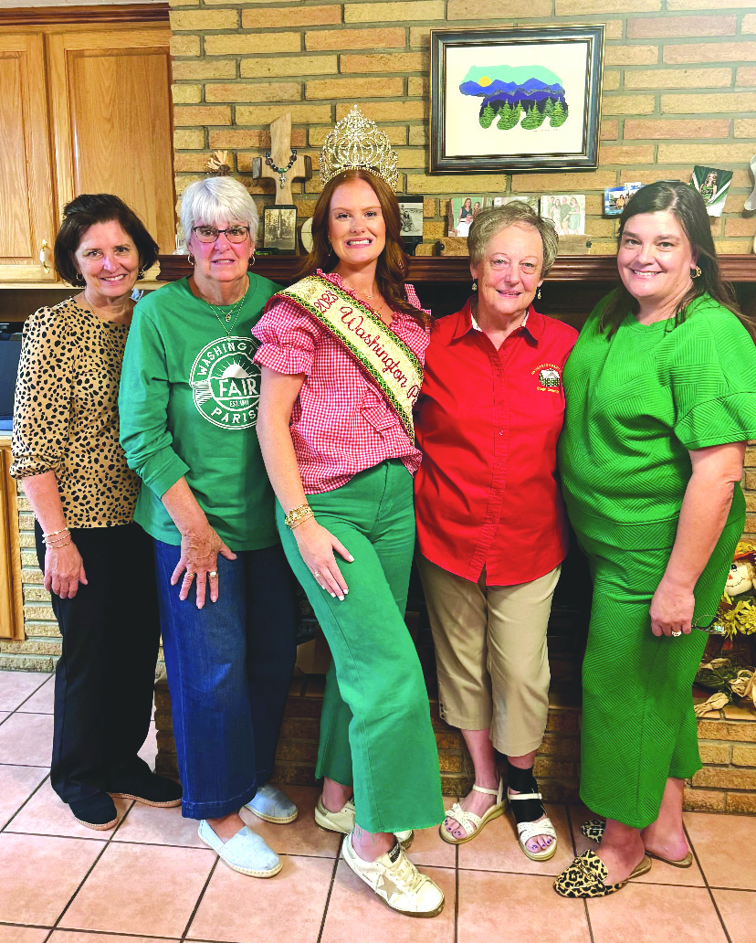 All members agree that both ladies are truly a blessing to our fair and our community. From left to right in the photo above are Sandy Morgan, Anne Millette, Queen Addie Goings, Mercer Brumfield, and Kelli Goings.