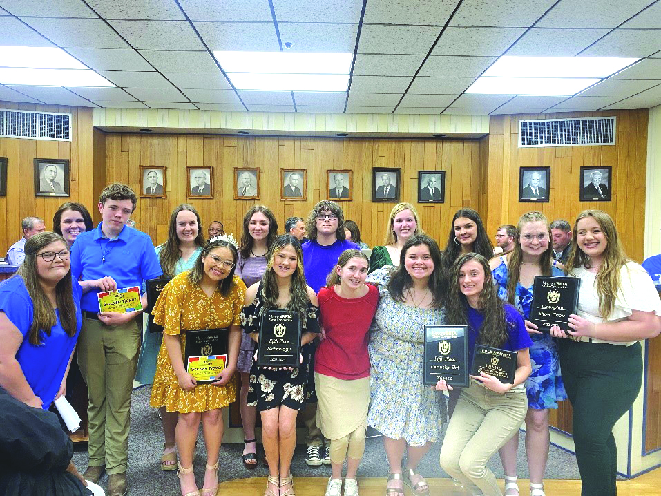 High School Beta winners - Harleii Thomas, sponsor, Principal Ramona Thomas, Seth Williams, Lylah Crain, Jaelyn Walker, Gabriel Ladner, Trinity Dorsey, David Haga, Eva Keaton, Anna Shelby, Maydee Seals, Alyssa Page, Cameron Magee, Hannah King, Lindsey Jenkins