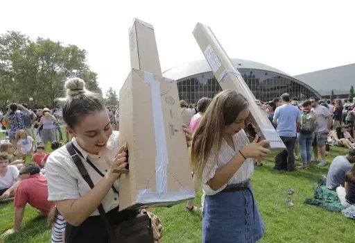 DALLAS (AP) — Millions of people along a narrow band in North America will look up when the sky darkens during a total solar eclipse on April 8. When they do, safety is key.