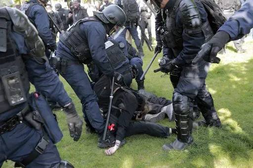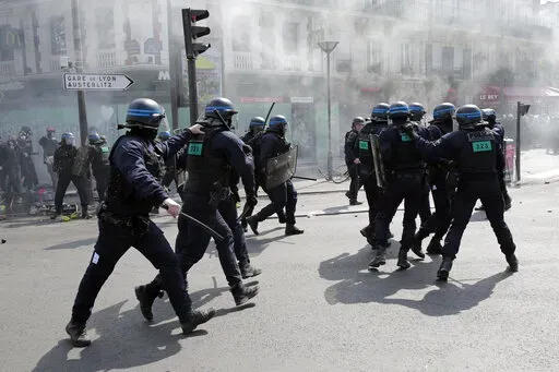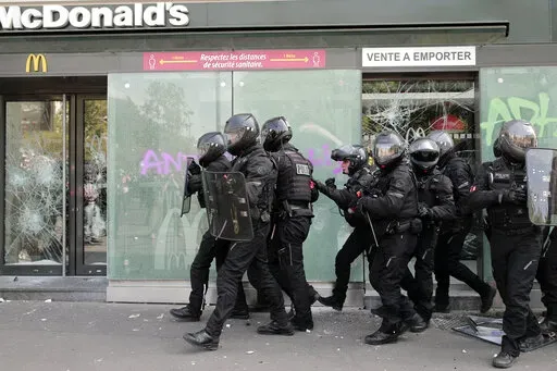 Interior Minister Gerald Darmanin said 45 people had been detained so far, including the young woman. Eight police officers were injured, he said, calling the perpetrators of the violence “thugs” who were trying “to stop the right to demonstrate."