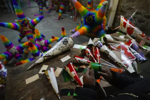 ACOLMAN, Mexico (AP) — María de Lourdes Ortiz Zacarías swiftly cuts hundreds of strips of newsprint and colored crepe paper needed to make a piñata, soothed by Norteño music on the radio while measuring pieces by feel.