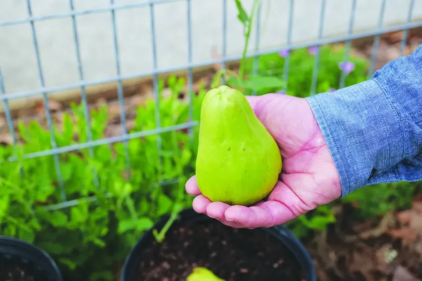 Patience is key when growing mirliton, as flowers won’t appear until late summer, producing a fall crop that will last all the way to the first frost. Each vine can produce dozens of fruits!