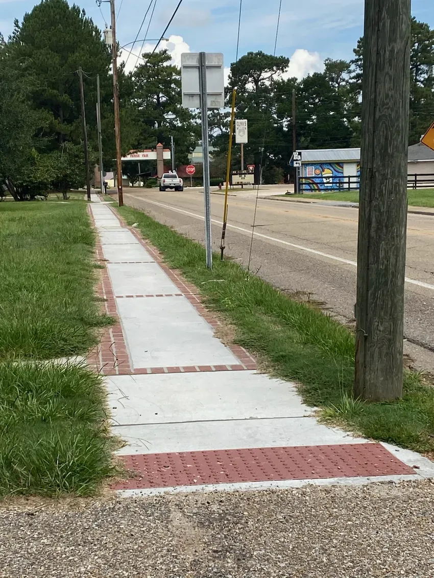 The new sidewalks are part of a large sidewalk improvement program for Franklinton that was spearheaded by the Parish Government with a grant from the state Department of Transportation and Development. New sidewalks are in place around the Courthouse and running alongside Main Street all the way to Washington Street. The next phase of the program will result in the same style of new sidewalks going south on Main Street well on past Riverside Medical Center.
