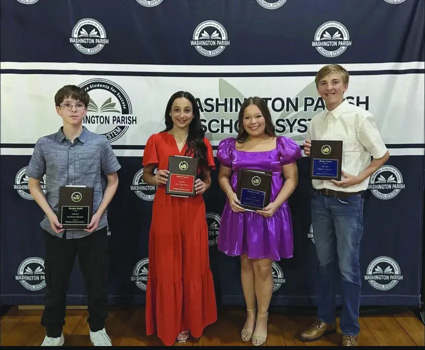 The 2025 Washington Parish Junior High School Students of the Year are, from left to right: Reedan Smith, Mt. Hermon School; Mattie McCormick, Pine Junior High; Isabella Ikerd, Franklinton Junior High; and Brody Forbes, Varnado High School.