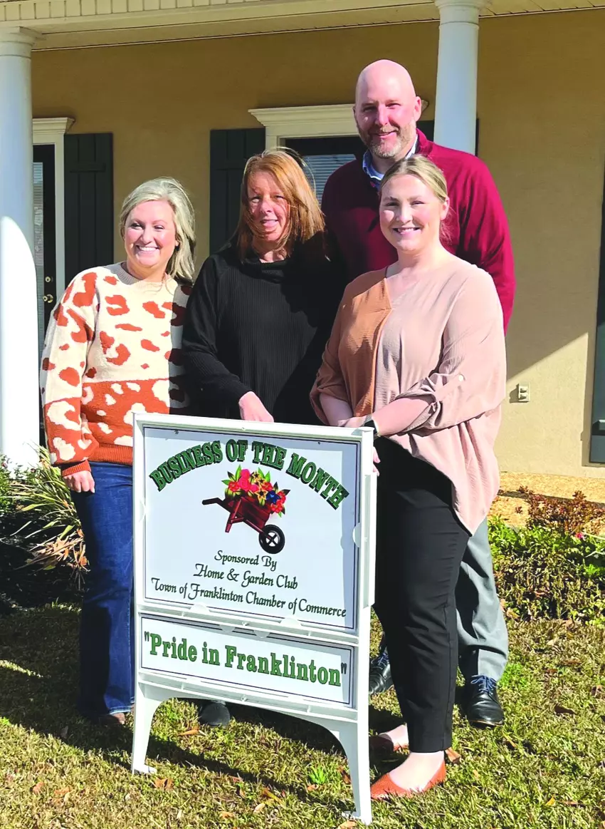 In the first photo, proudly showing off their “Business of the Month sign are the staffers at Kuhn-Garver Attorneys at Law, 1027 Main Street, Franklinton.