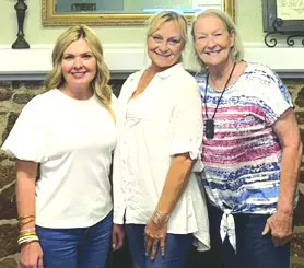 The Magnolia Belles held their September meeting on September 8 at the Rock House. The meeting was hosted by Joni Brindle, Jackie Harrison, Niki Watson and Stephanie Ingram. The meeting was Fair themed and a good time was had by all. Shown in the photo above are Niki Watson, Stephanie Ingram and Jackie Harrison.