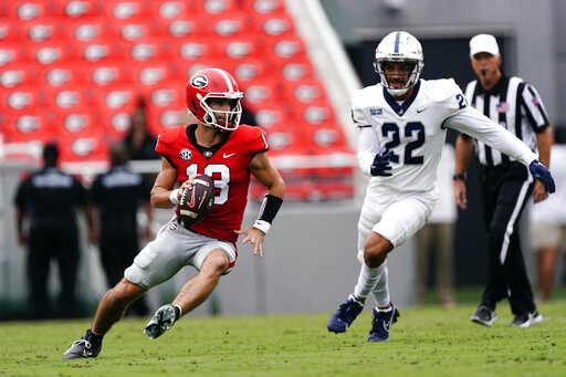 New No. 1 team Georgia visits South Carolina. The defending national champion Bulldogs, who replaced Alabama atop The Associated Press rankings, have outscored their first two opponents 82-3 behind quarterback Stetson Bennett. Spencer Rattler and the Gamecocks are coming off a 44-30 loss to No. 10 Arkansas and face another huge challenge. It's even tougher given the season-ending ACL injuries to linebackers Jordan Strachan and Mo Kaba. But the Gamecocks' Rattler passed for 361 yards last week even though nearly half came in the fourth quarter. South Carolina has struggled to run the ball and faces one of the nation's best defenses.