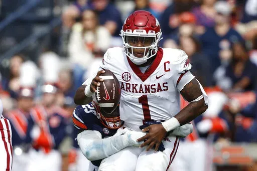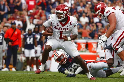 Daniels has the second-most rushing yards among FBS quarterbacks (619) and is tied for third in rushing touchdowns (10). ... Saturday will be the first time coach Kelly has faced Arkansas. … Kelly has won the past 17 games he’s coached in November. ... Arkansas ranks second in the SEC with 28 total sacks. ... Arkansas QB KJ Jefferson has faced 10 top-25 teams in his 23 career starts, a number that will increase to 11 if he starts against the Tigers.