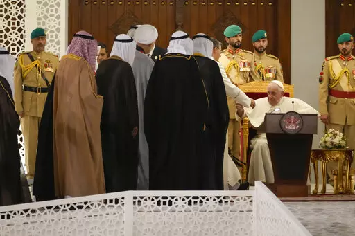 Al Khalifa, for his part, praised Francis' efforts to promote interfaith fraternity and said Bahrain was committed to a similar goal of a world “where tolerance prevails while striving for peace and rejects whatever divides its unity.”