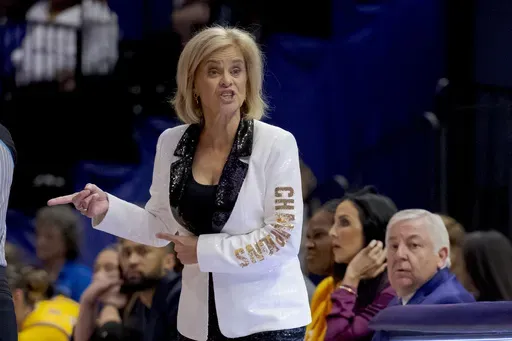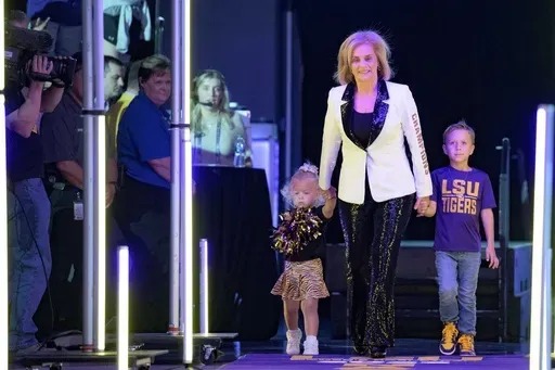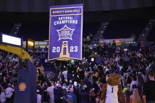 BATON ROUGE, La. (AP) — When LSU coach Kim Mulkey looked around the locker room before pre-game ceremonies to honor the program's first national title last spring, she said she saw players who looked like they didn't know whether to smile or look sour.